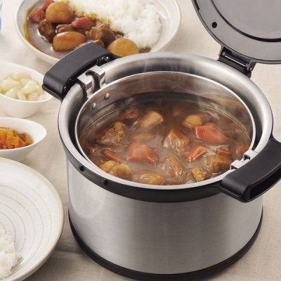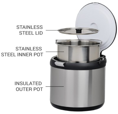 The thermal cooker works best when it is at least 75% full. If you’re making a smaller recipe, boil water in the larger inner pot and place it in the thermal cooker. Then use the smaller inner pot to bring your food to a boil and then place it on top of the larger pot inside the thermal cooker. This gives the thermal cooker enough heated mass to keep your food cooking. The great thing about a thermal cooker is that by using both inner pots, you can cook two different kinds of food at the same time.