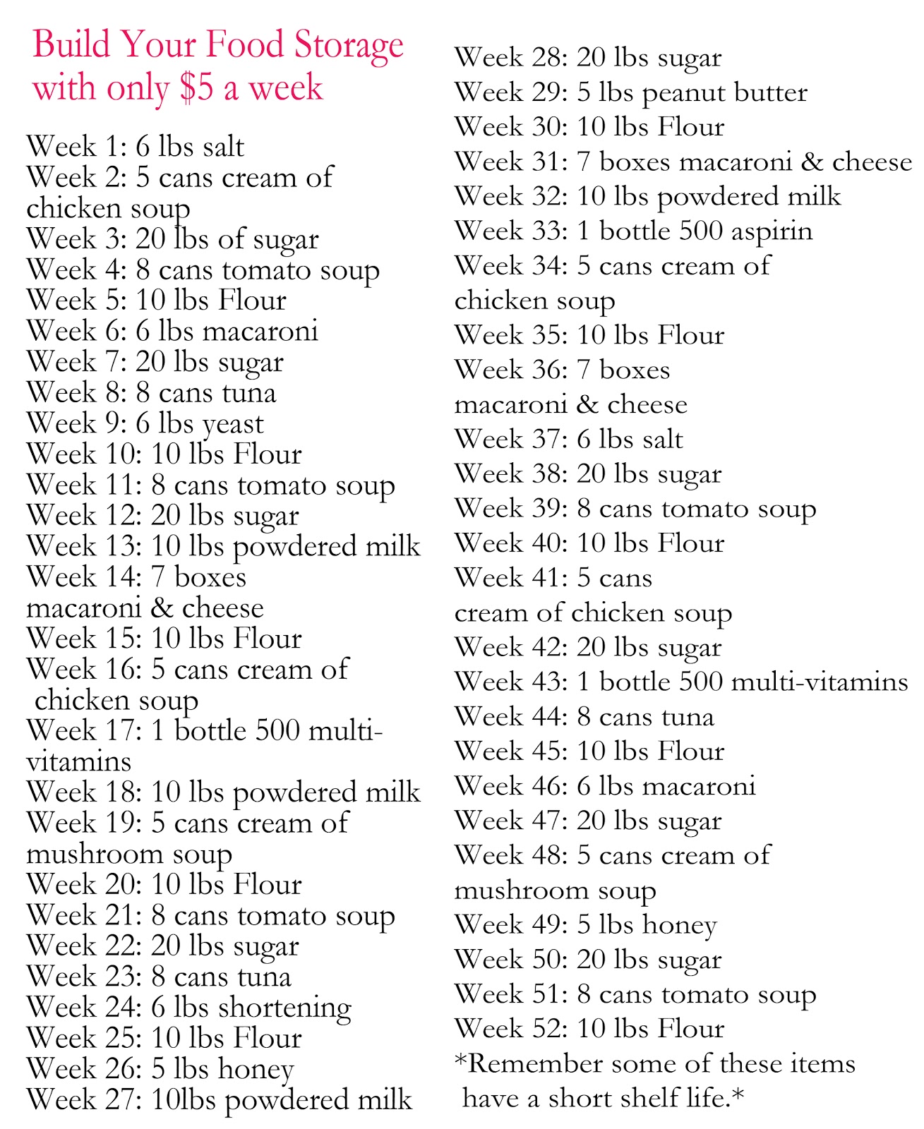 $5 PER WEEK FOOD STORAGE PLAN (Classy Clutter)